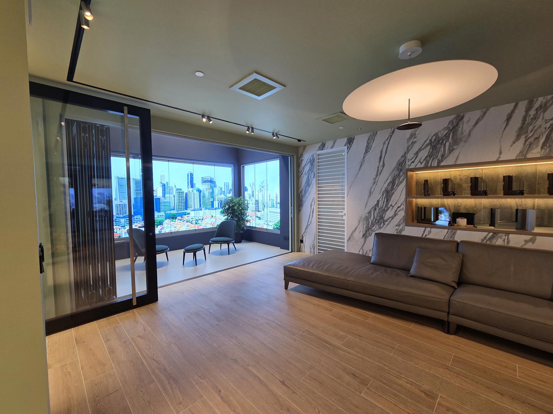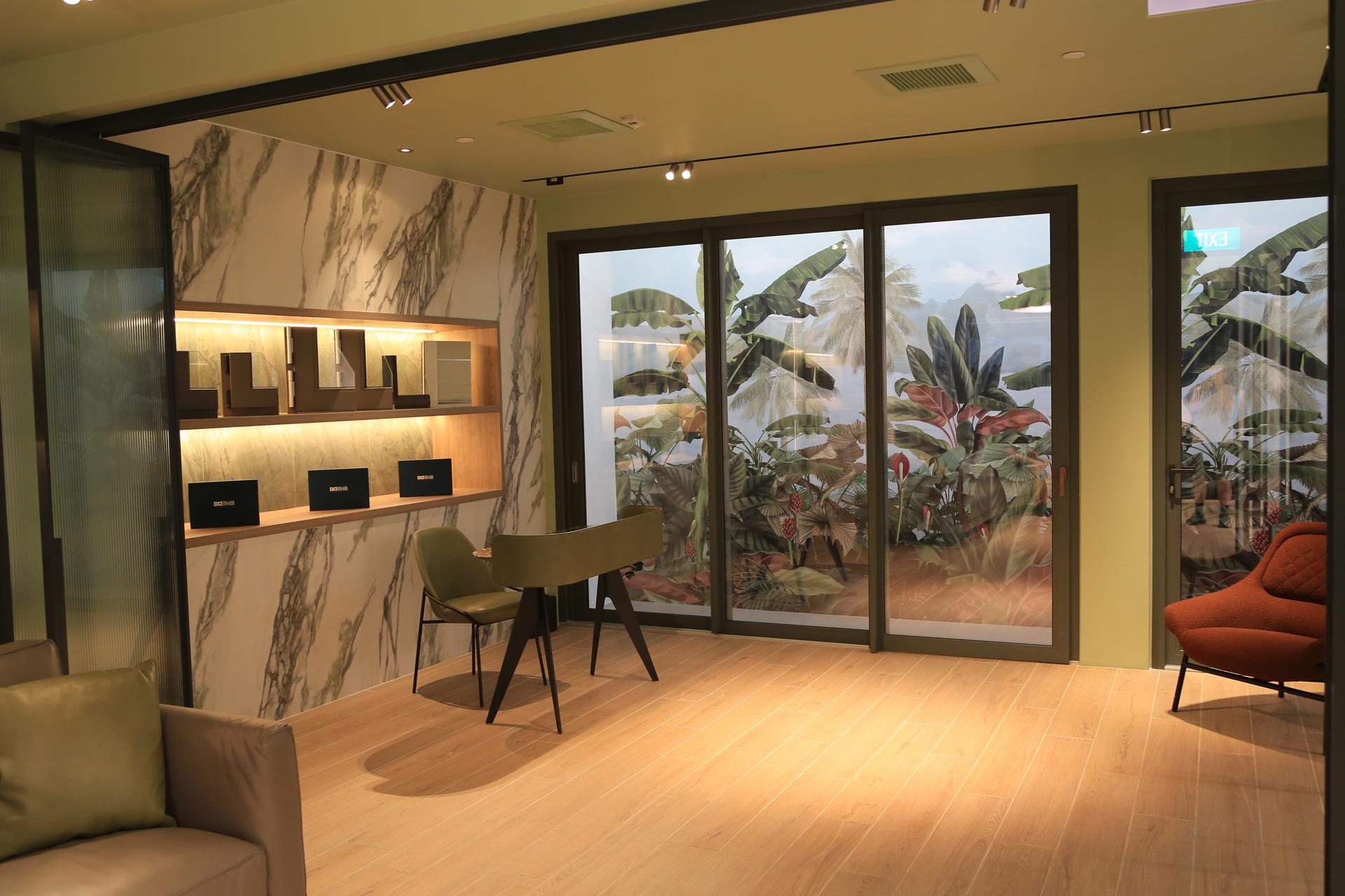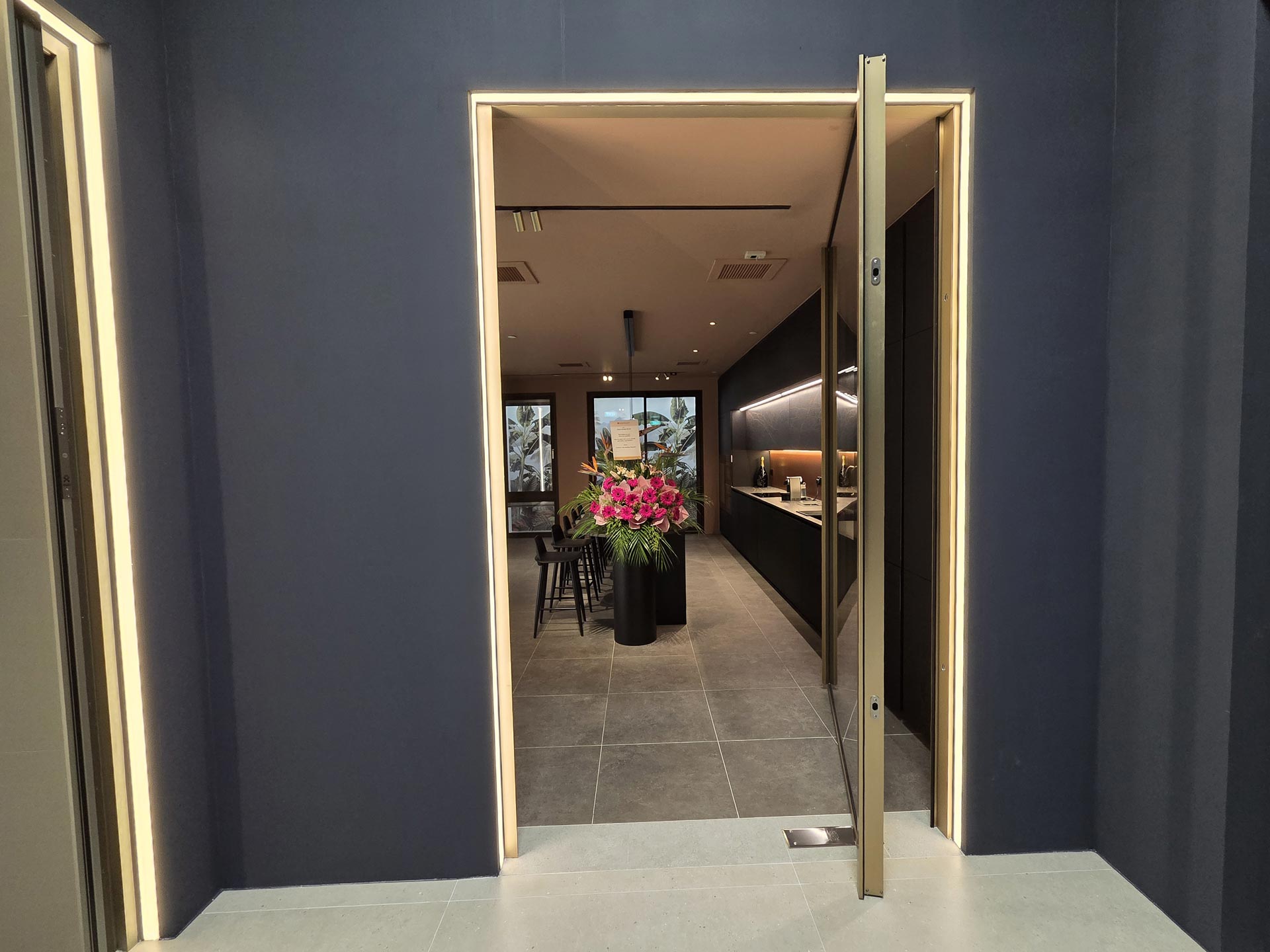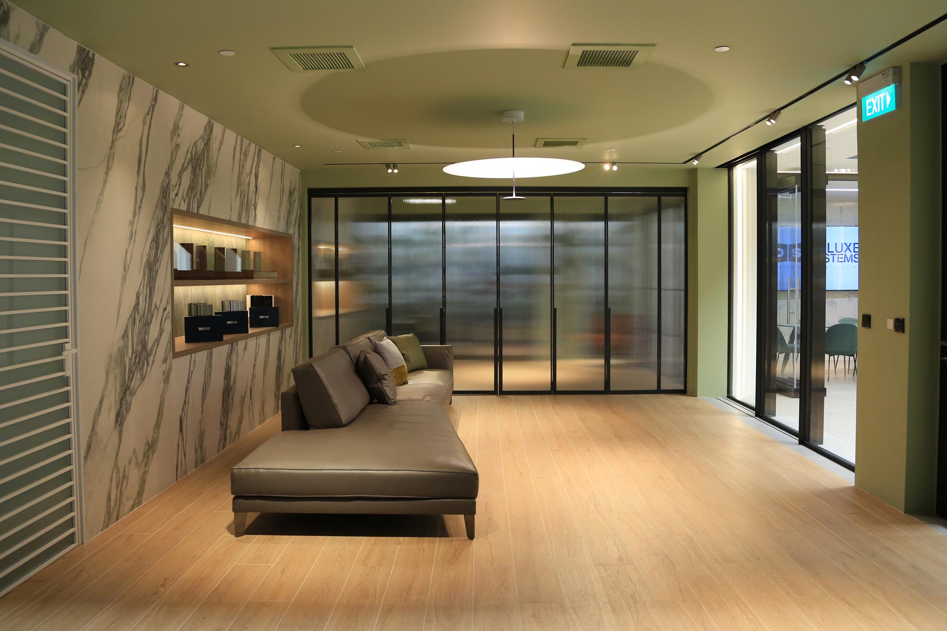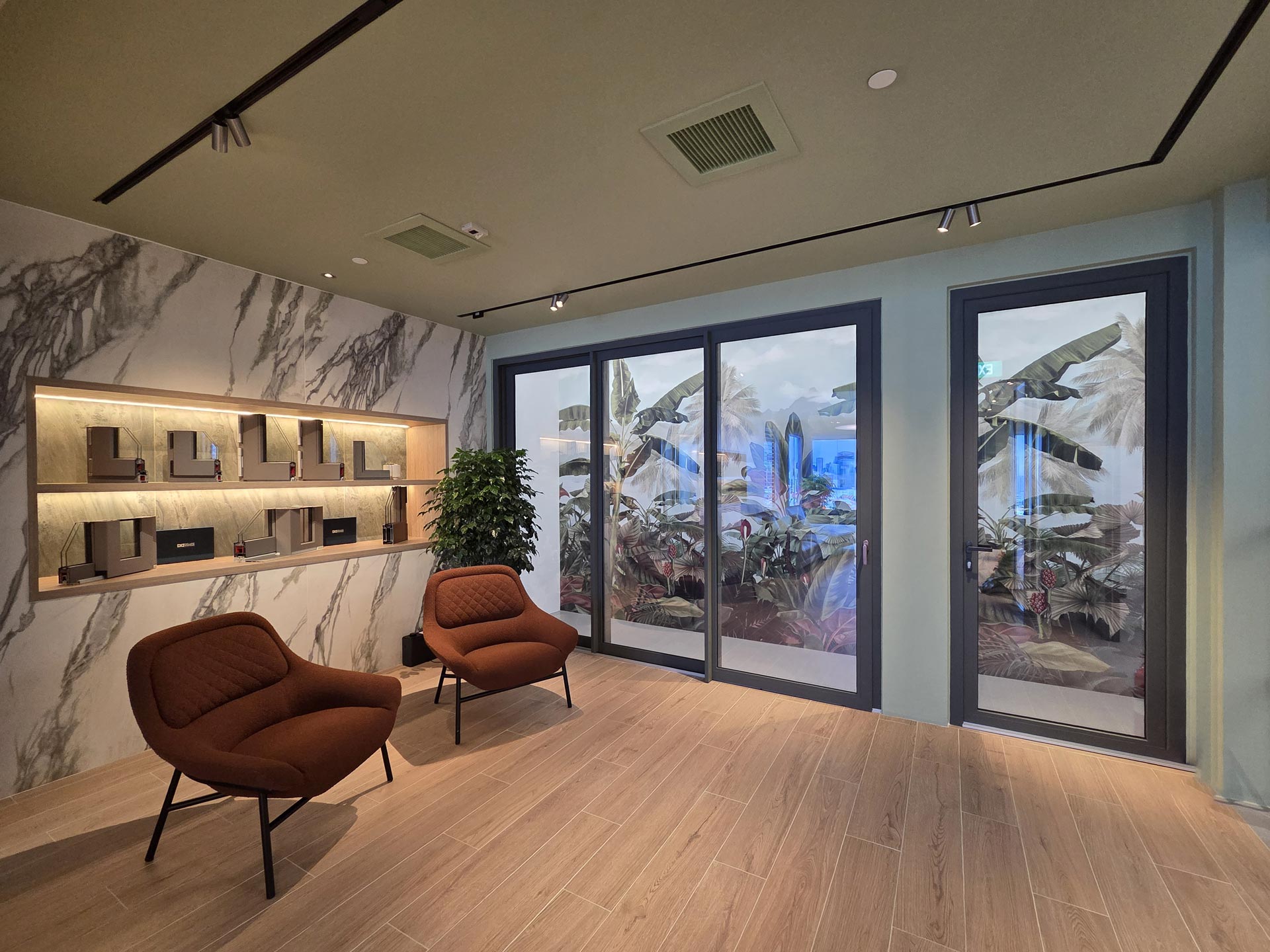 The new Deluxe System showroom in Singapore transforms the act of looking through a window or passing through a door into a spatial experience by means of a continuous sequence of double-height and single-height living spaces where large sliding façades and folding systems dissolve the boundary between lounge and terraces. Here, the brand’s capacity to create fluid transitions between interior comfort and exterior openness is made tangible, turning the window wall into both a panoramic frame and a moving partition.